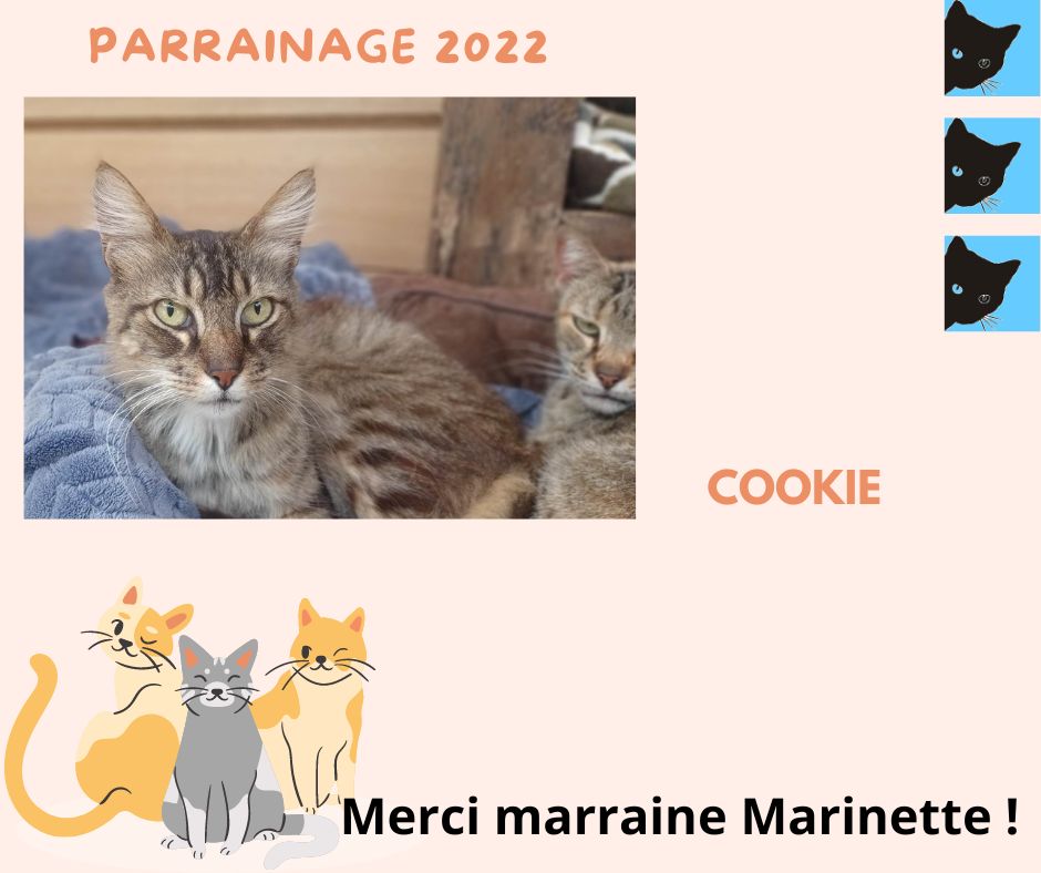 Merci (avec du retard) à Marie Fourny d’avoir renouvelé pour la 3ème année le parrainage de Cookie et ainsi financé son rappel de vaccination en 2022.