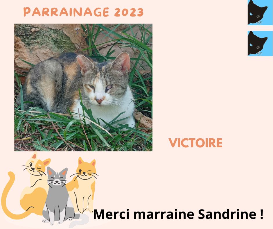 Victoire est une chatte très sensible. Avec le temps, elle a appris à faire confiance. C’est maintenant une petite coquine, qui attend souvent ses croquettes bonbons sur le banc devant la maison des chats.