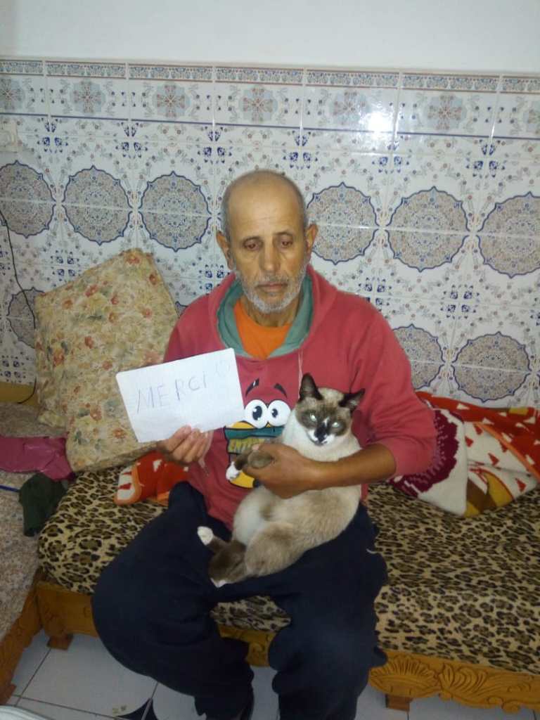 Merci à Charlotte Dubois d’avoir financé la stérilisation de Mimoun, le chat que Hassan (parrain de quartier) a adopté, abandonné dans la rue.