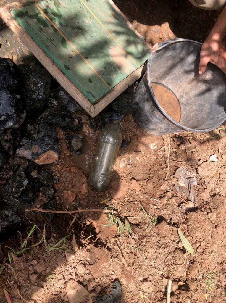 On a même trouvé une bouteille en plastique sûrement laissé pendant les travaux…