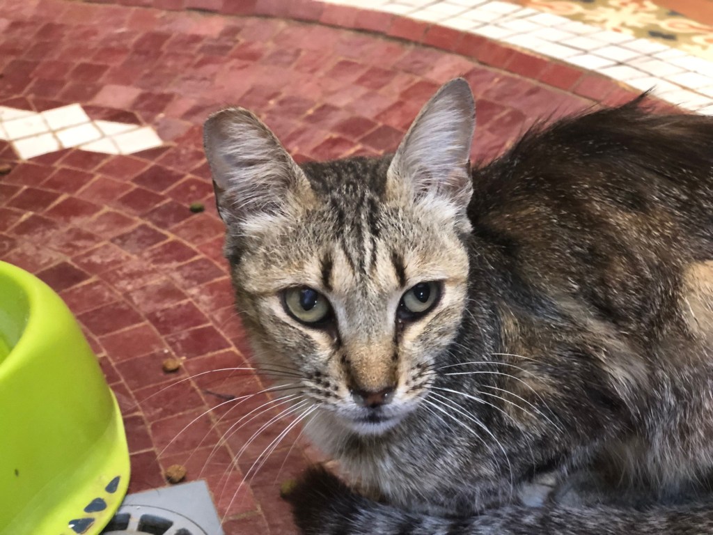 Ariel a toujours des problèmes de poids et de diarrhée… Grâce à Marie Perrin qui a ramené des médicaments de son vétérinaire, j’ai trouvé un qui a l’air de fonctionner sur les diarrhée. J’ai testé un peu mais pas assez de quantité. Je viens d’en commander en France et il faut le temps qu’il arrive ensuite à Esssaouira.