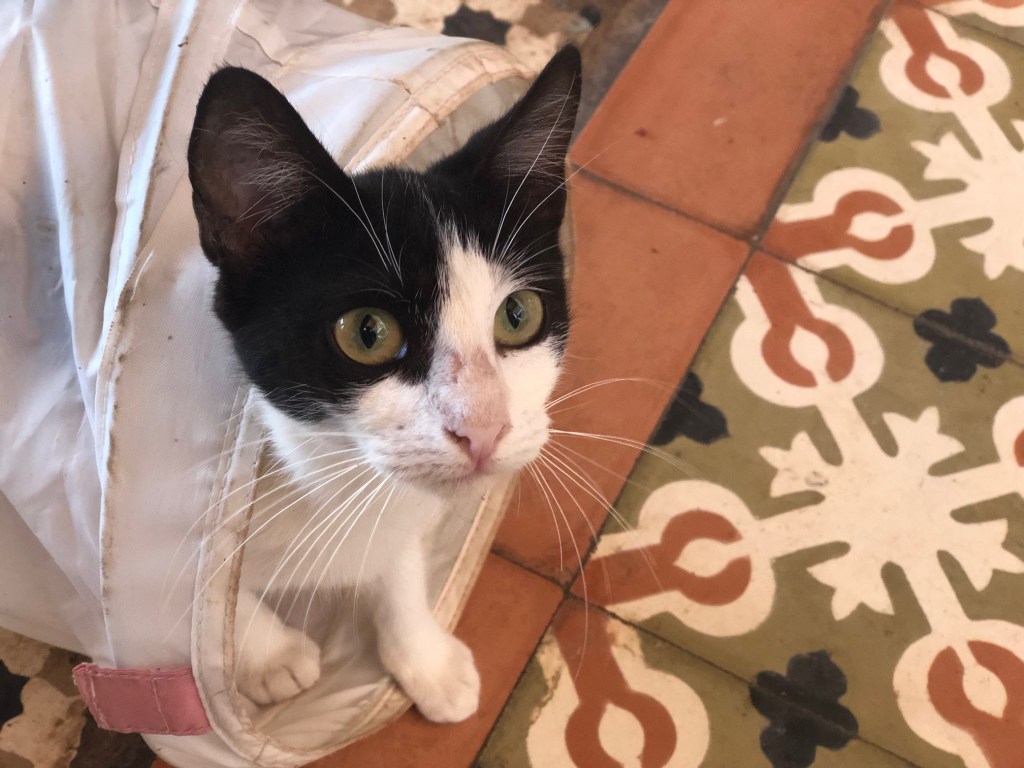 En photo de la petite Myosotis qui est arrivée nouveau-née avec sa maman Mimosa et ses 3 frères et soeurs (les petits sont au paradis des chats depuis…).