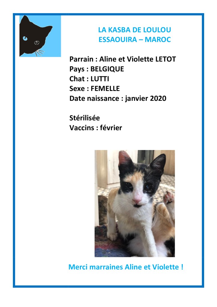 Merci à Aline Letot et sa fille Violette d’avoir choisi de parrainer Lutti ! Et ainsi financer sa vaccination annuelle !