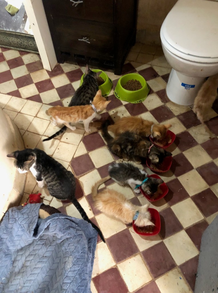 Il faut 24 sachets par jour pour les chatons les plus fragiles qui sont mis à l’écart… dans ma salle de bain… dernier endroit libre…