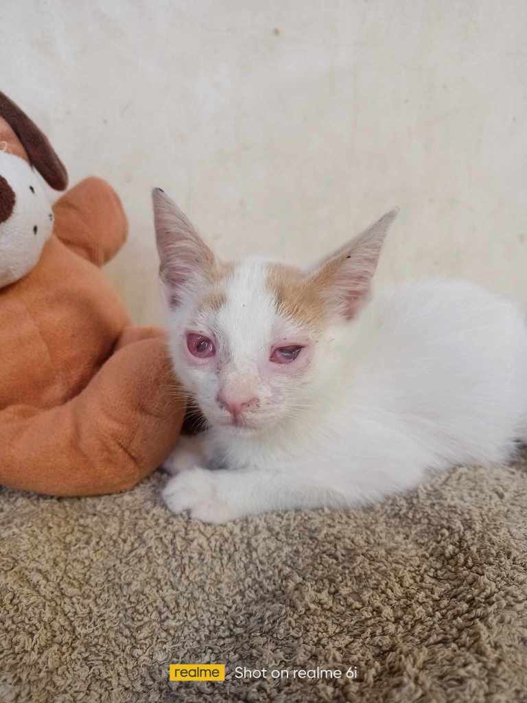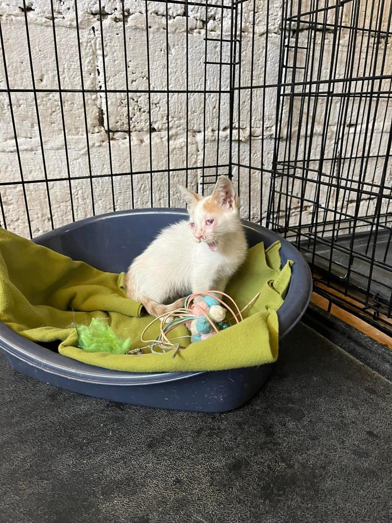 Ce petit chaton aveugle est arrivé la semaine dernière suite à la demande de Sophie Suter.
