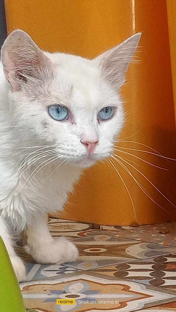 Mino vit au fond du jardin des chats et dans la maison des chats, parfois un petit tour à la maison principale pour manger des croquettes bonbons.