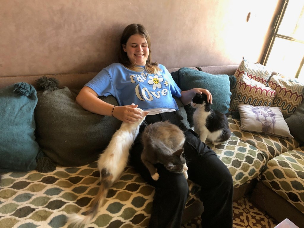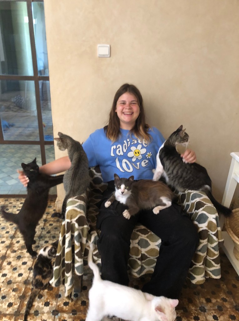 Merci à Valentine d’être venue ce matin participer aux soins des chats de La kasba de Loulou !