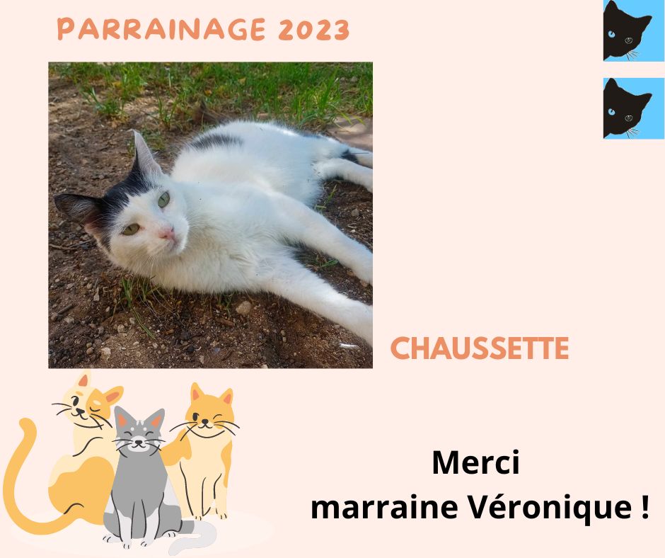 Merci à Véronique Duez pour le renouvellement du parrainage de sa filleule Chaussette pour la 2ème année ! Et ainsi financer sa vaccination annuelle !