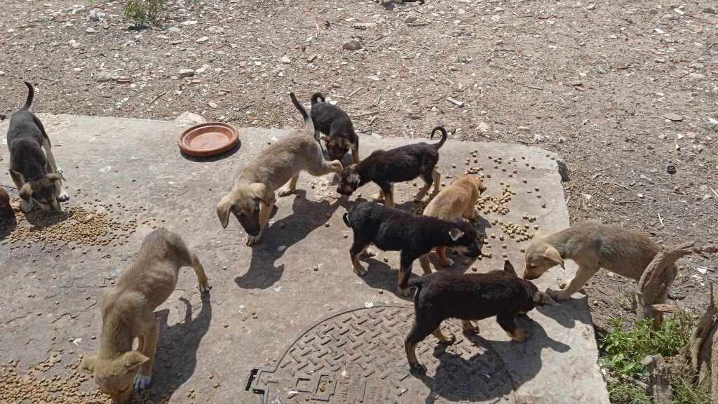 Photos : nourrissage chiens Ida Ougourd et chiots à Ghazoua