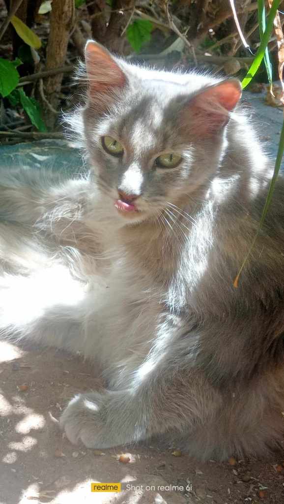 Okaasan se blottit sous les buissons d’ibiscus dans l’herbe pour chercher la fraicheur.