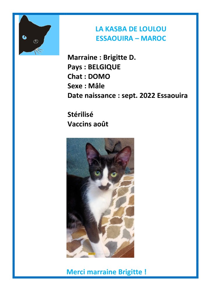 Merci (avec du retard) à Brigitte D. d’avoir choisi de parrainer Domo et ainsi avoir financée sa vaccination annuelle.