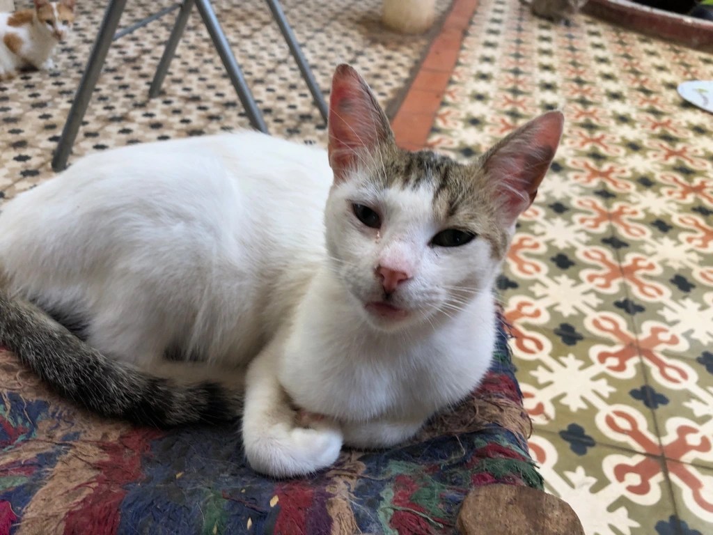 Irina est une chatte qui était malade dans la rue, signalée par une marraine de quartier.