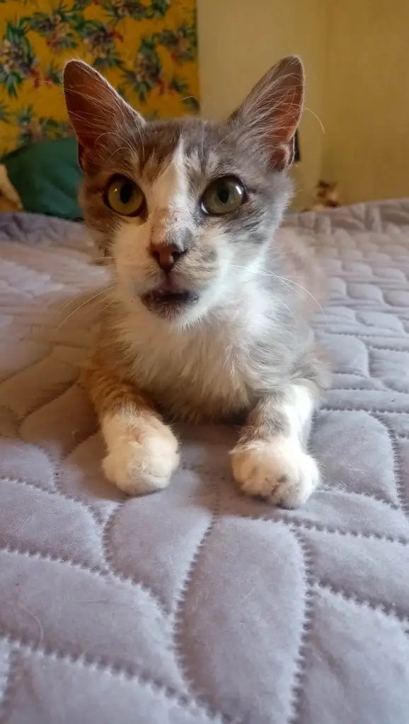 Maxime nous a fait très peur il y a plus d’un mois. Il a eu un problème dans la bouche et des asticots dans la gencive ! Une horreur ! Il a de toutes petites dents en bas et en haut…