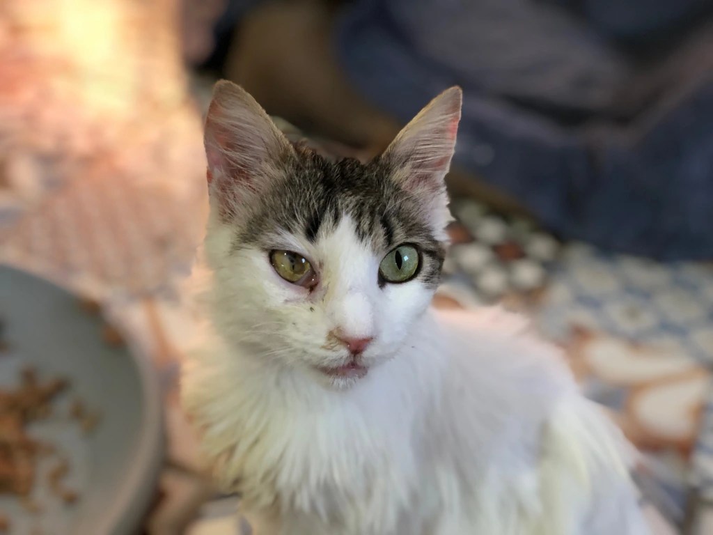 Albane va mieux maintenant. Elle adore être avec les petits dans le bureau. Nous continuons à traiter son œil tous les jours.