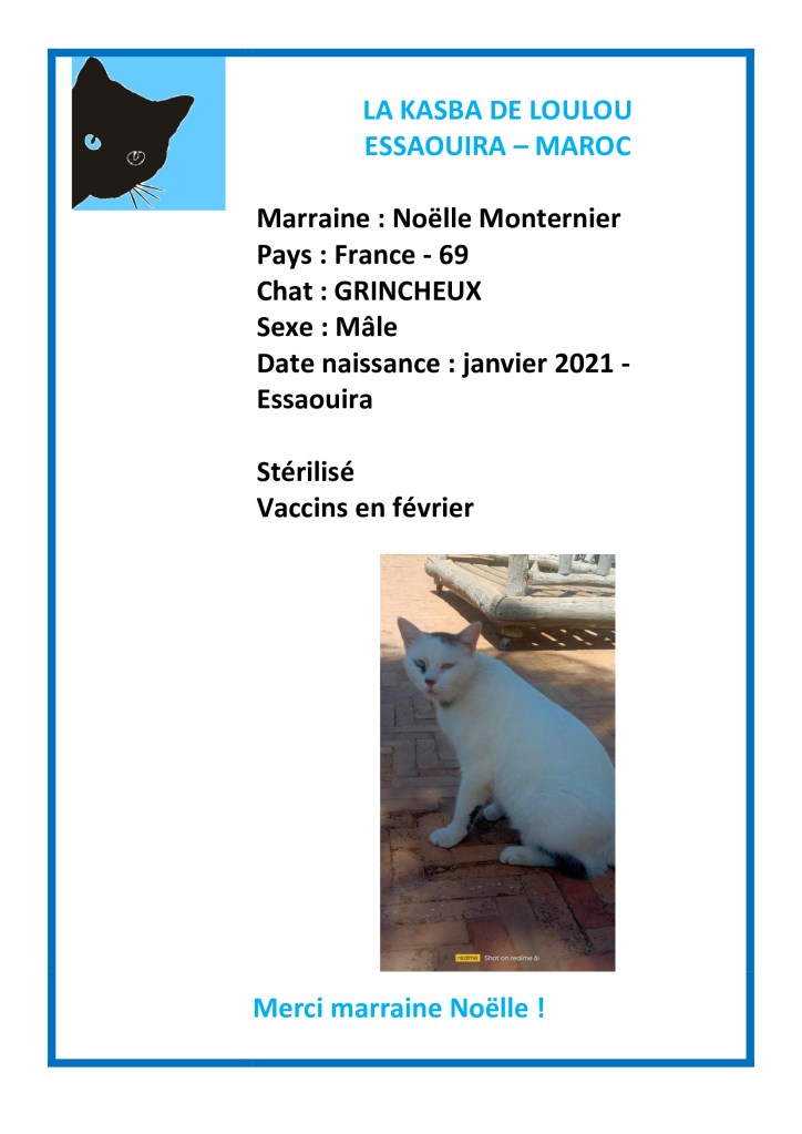 Merci à Noelle Monternier d’avoir choisi de parrainer Grincheux et ainsi financé sa vaccination annuelle !