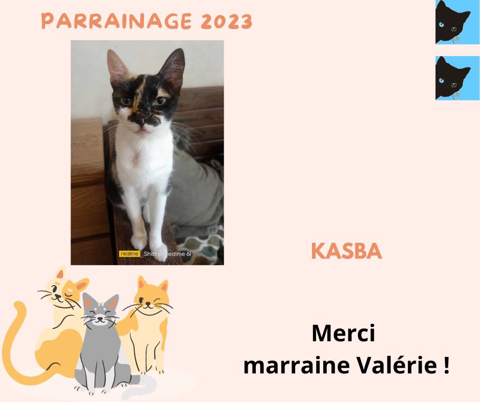 Merci à Valérie Pavia pour le renouvellement du parrainage de sa filleule Kasba pour la 2ème année ! Et ainsi financer sa vaccination annuelle !