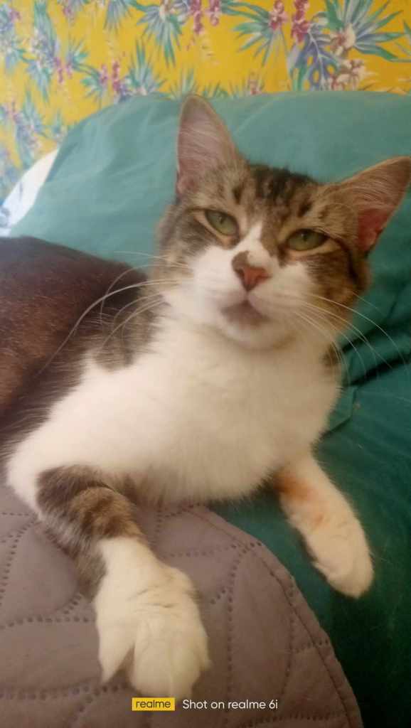 May après avoir perdu tous ces petits, a été stérilisée ensuite elle a pris place dans ma chambre et n’en sort plus ! A la maison, ce sont les chats qui décident quand ils veulent sortir après une période d’adaptation.
