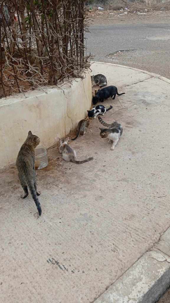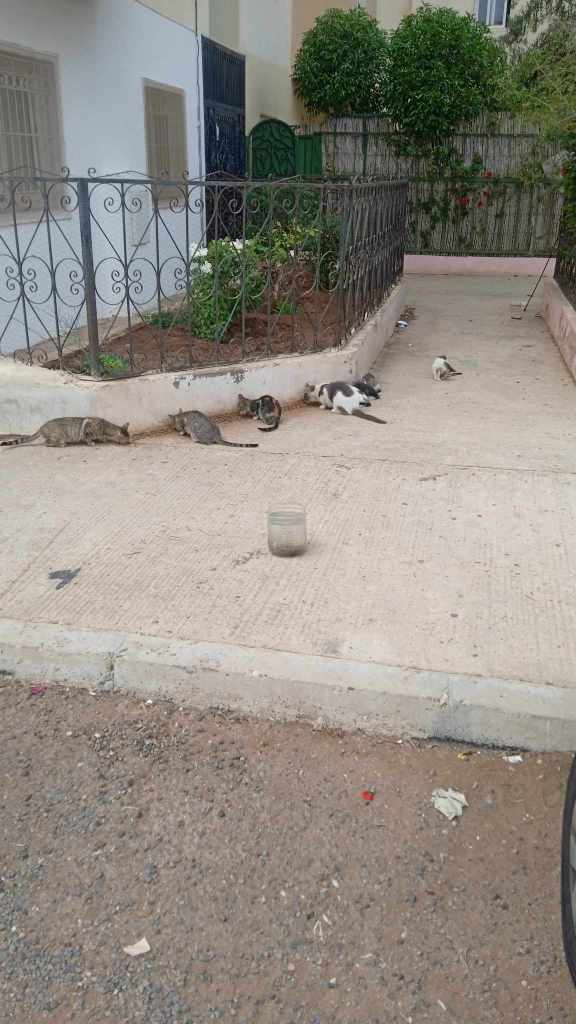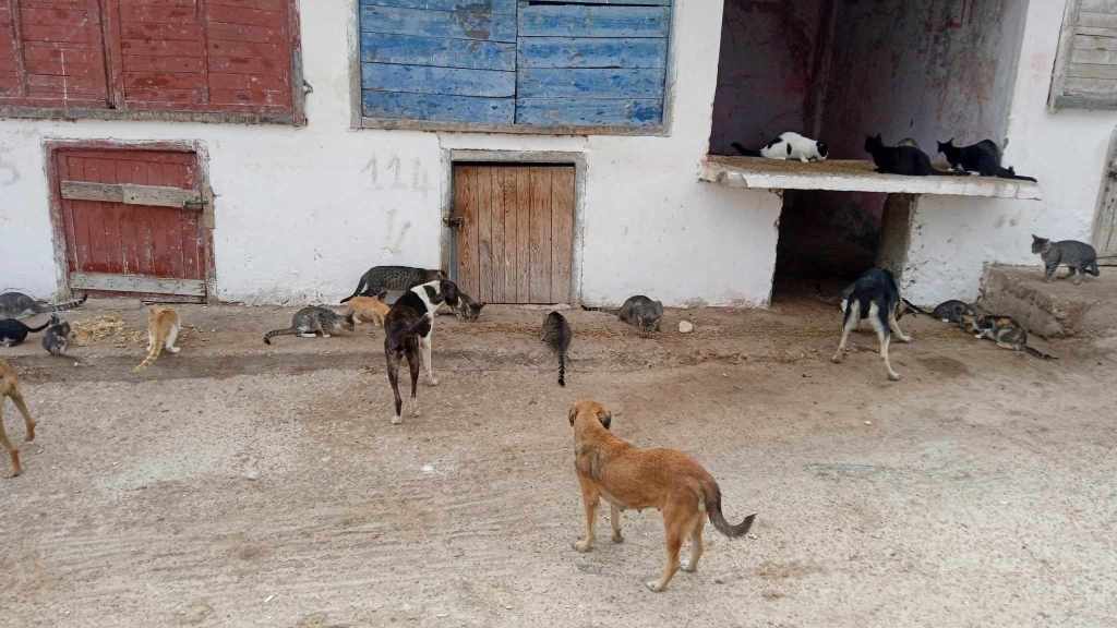 Merci à Adil Elb, employé de La kasba de Loulou, qui effectue la tournée de nourrissage à Ghazoua, Essaouira et Ida Ougourd pour les chats et les chiens tous les jours. Il m’a envoyé des photos d’une partie de la tournée du jour.