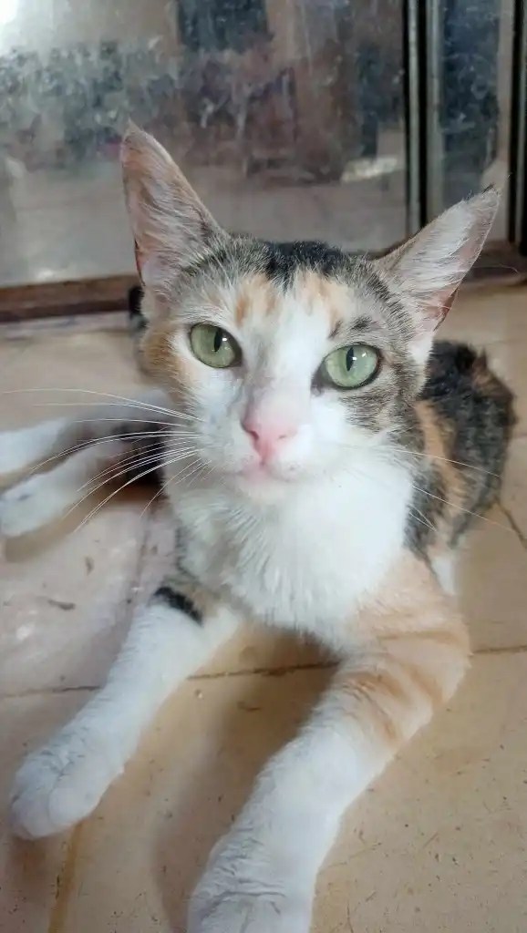 J’ai trouvé Aldi devant l’un de mes fournisseurs de nourriture pour les animaux… chatte de maison abandonnée… d’où sont nom Aldi, référence à un supermarché !
