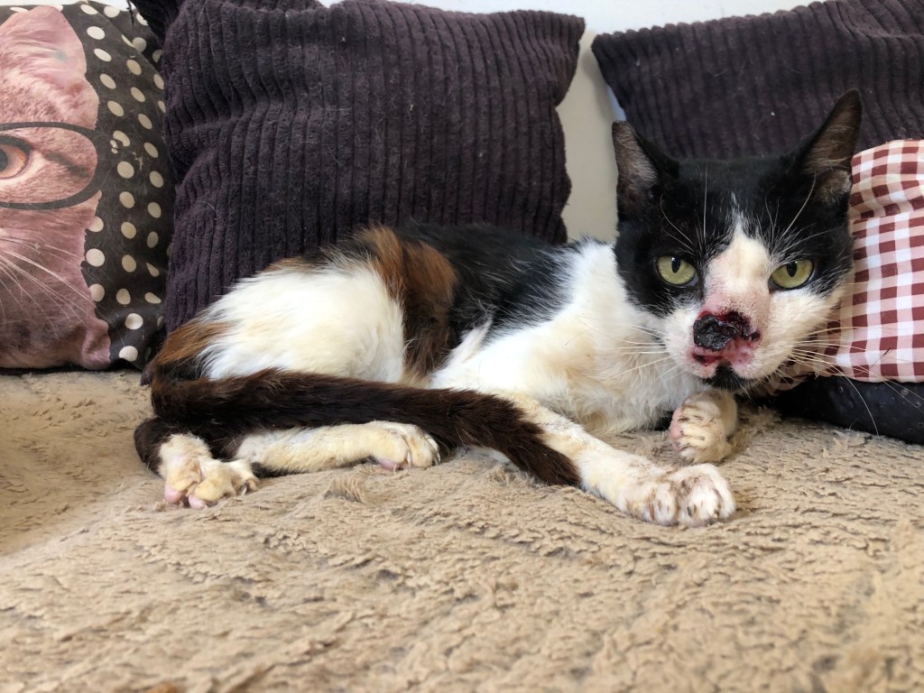 Suna va bien. Il mange avec appétit. Il vit dans la maison des chats avec ses copains.