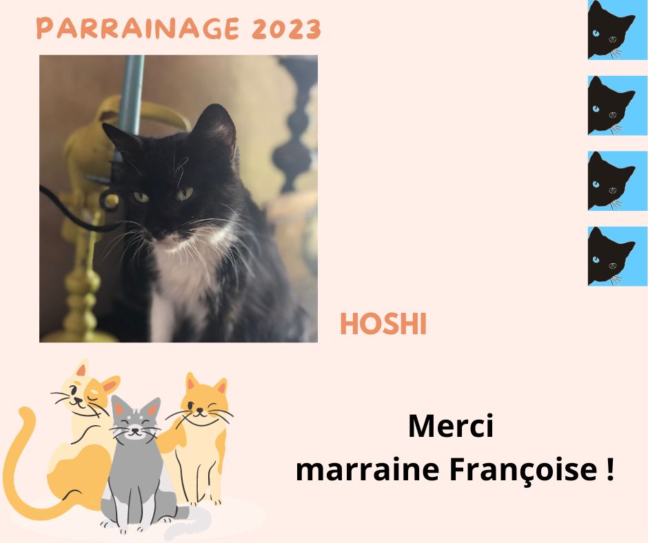 Merci à marraine Françoise Alexandre pour le renouvellement du parrainage de sa filleule Hoshi pour la 4ème année ! Et ainsi financer sa vaccination annuelle.