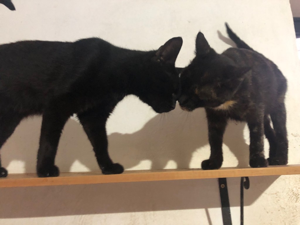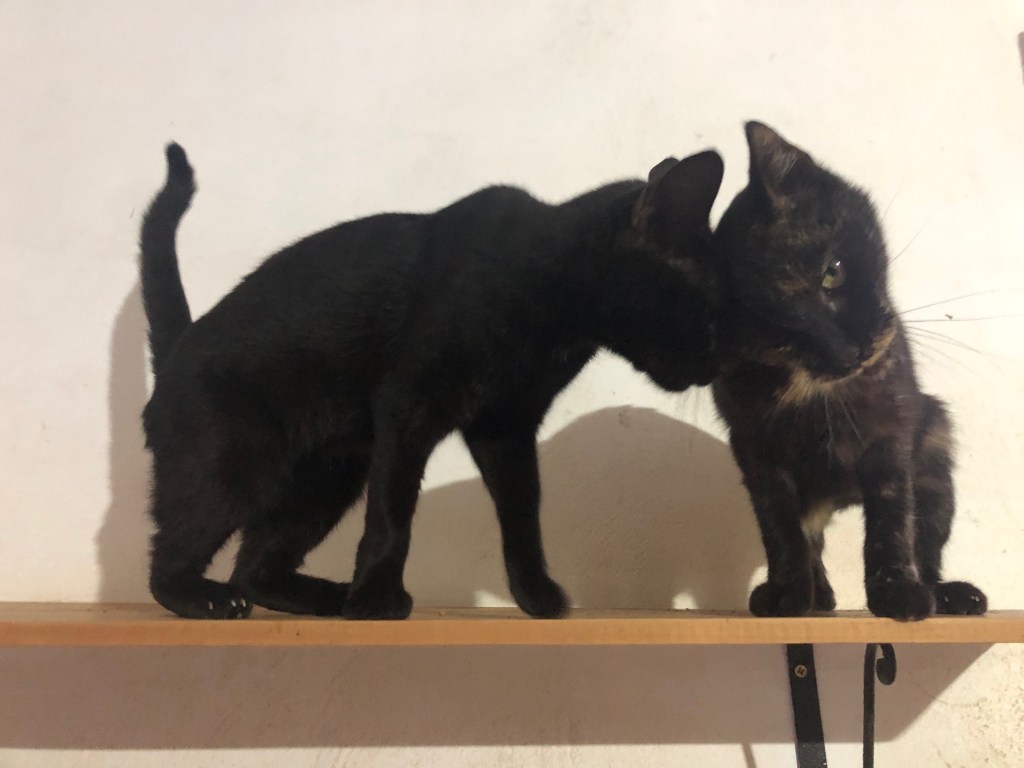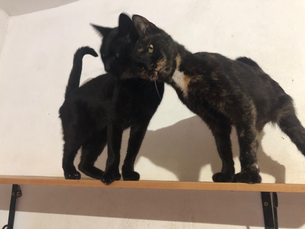 Séances de câlins entres les 2 belles panthères Alysée la noire (coucou parrain Angel Planet !) et Mistinguette (qui attend sa 3ème marraine Patricia Bodson)