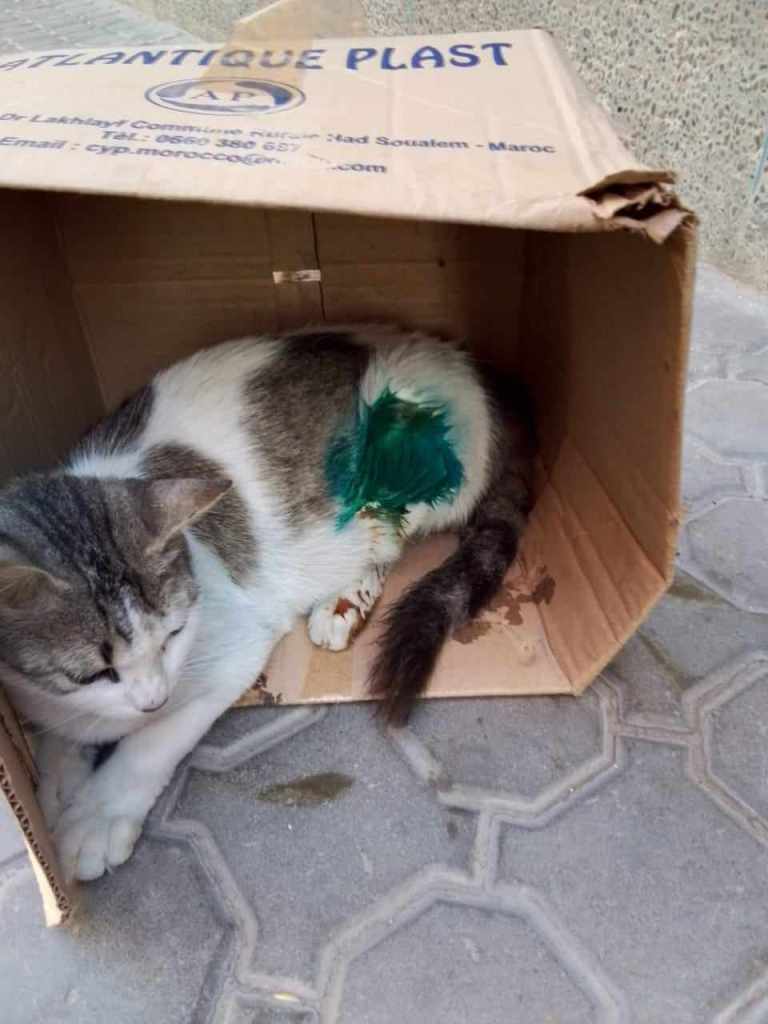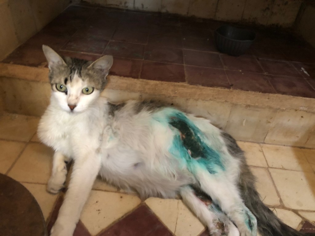 Fatima, marraine de quartier a signalé cette chatte enceinte accidentée.