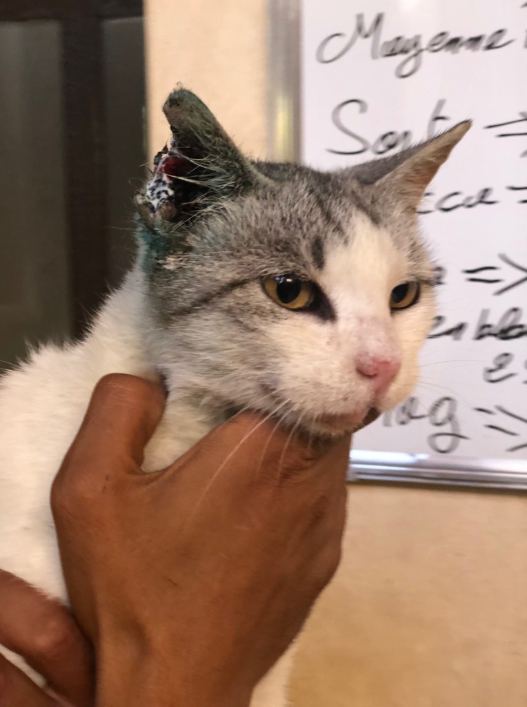 L’oreille de cette chatte ne guérit et même s’aggrave.