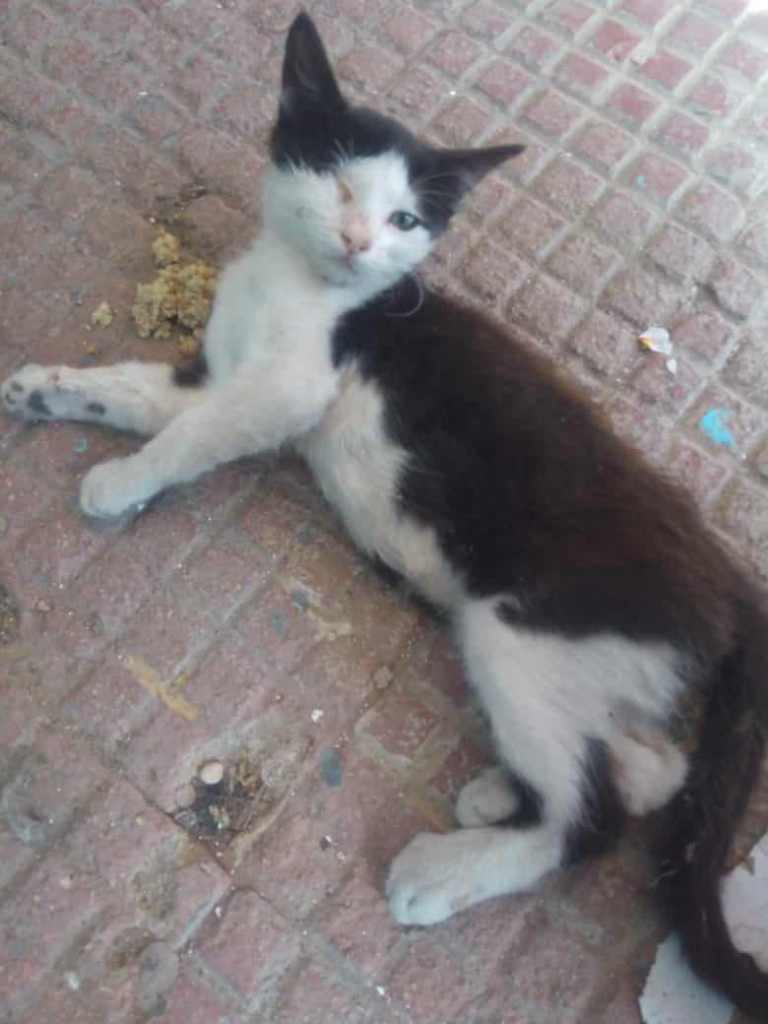 Ce petit mâle a été signalé avec un gros problème à l’œil par Si Hassan, parrain de quartier.