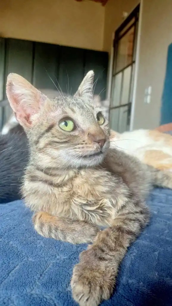 Nobody est un chat de petite taille. Il a eu beaucoup de coryza, maintenant il va bien et il est sous surveillance.