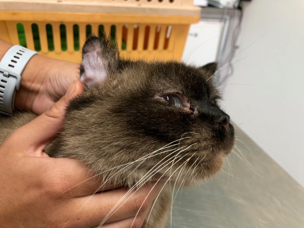 A force de se gratter l’oreille (problème de gâle des oreilles pas détecté…), l’oreille de Palma s’est gonflée de sang.