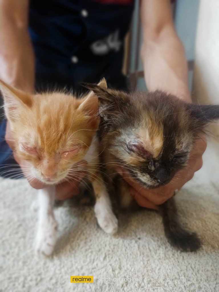 Ils ne retourneront pas avec leur maman… trop atteints, beaucoup de soins pour essayer de sauver leurs yeux…