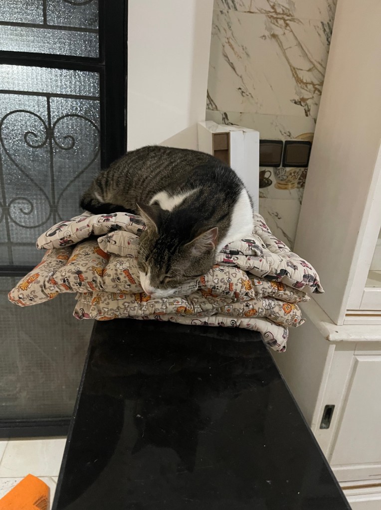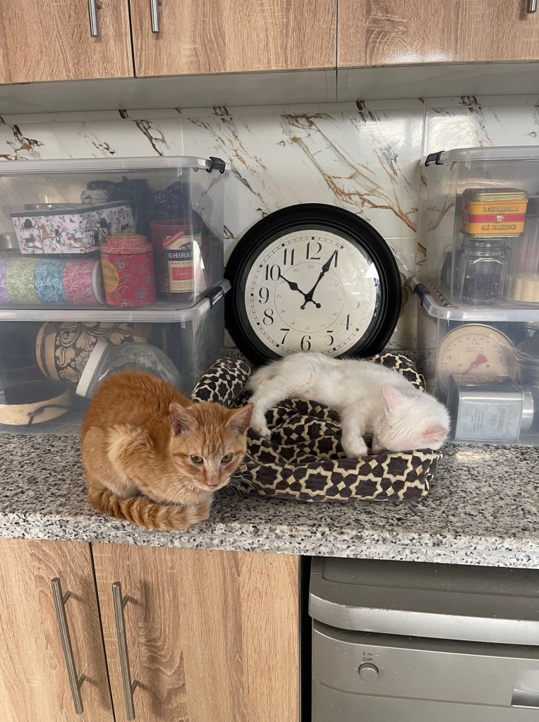 Tous les cartons sont rangés et tous les chats de l’appartement sont maintenant dans la nouvelle maison. Beaucoup plus d’espace, mais pas encore droit au jardin, car les clôtures ne sont pas terminées.
