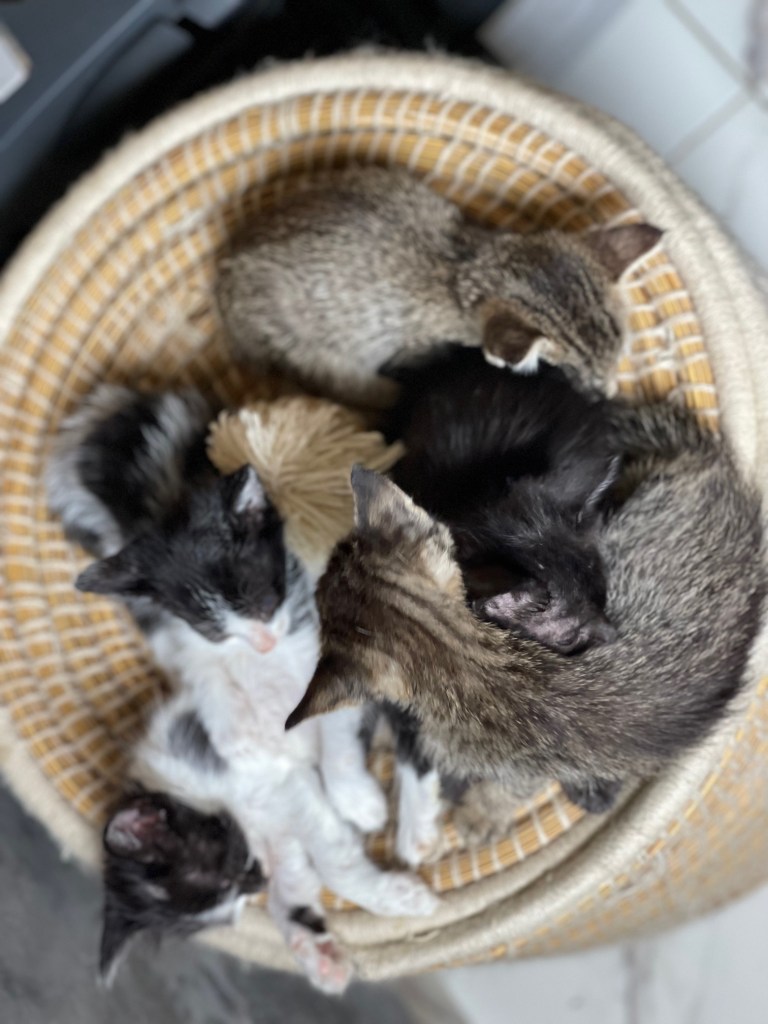 Meli-Melo des 6 chatons de maman Zelva que j’avais mis dans ma salle de bain faute de place….