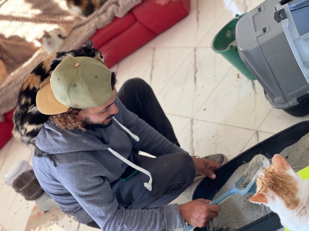 Mehdi, le nourrisseur des rues de La kasba de Loulou remplace le venredi Halim au travail fastidieux des litières chaque matin et ramassage des pipis et cacas par terre…