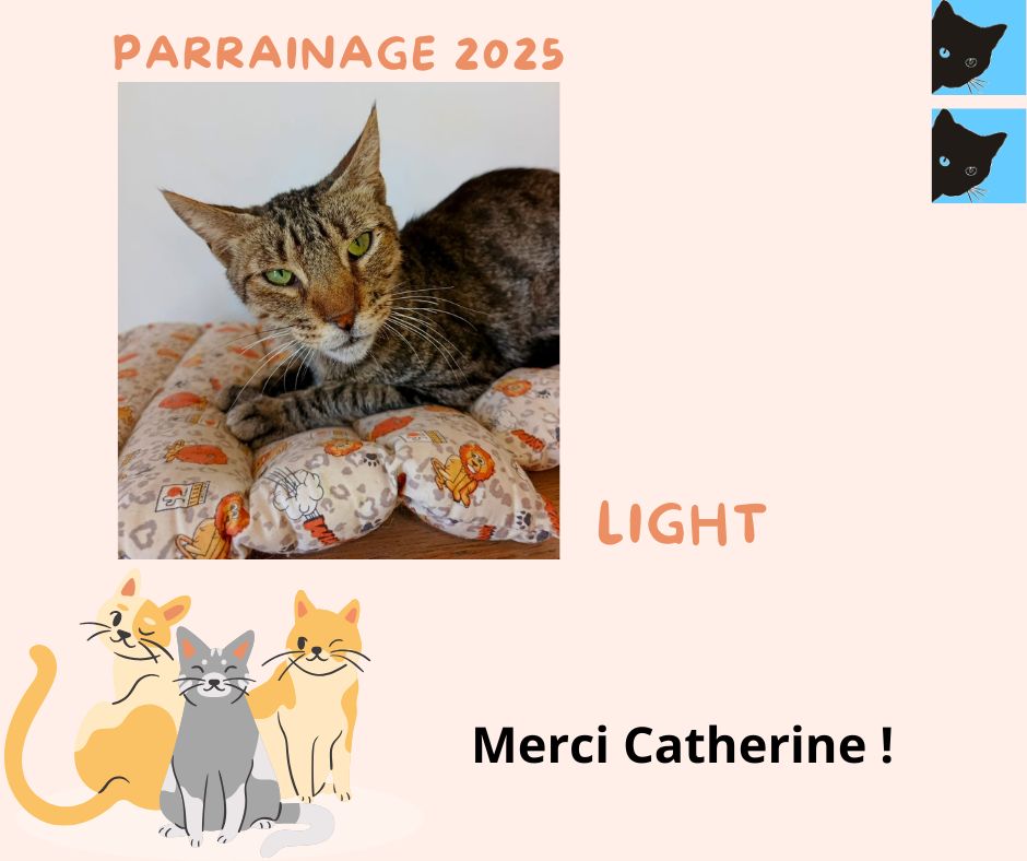 Merci à marraine Catherine S. Danemark pour le renouvellement du parrainage de son filleul Light pour la 2ème année et ainsi financer sa vaccination annuelle 2025 !