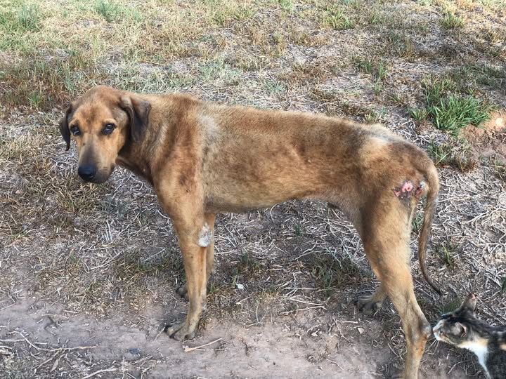 J’ai trouvé Rantanplan lors d’une tournée de nourrissage…. il ne pouvait même plus marché. Il est atteint de leishmaniose.
