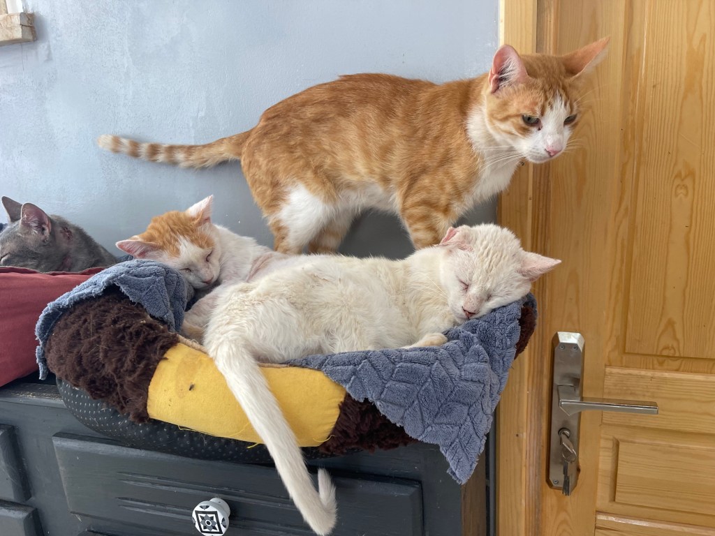 En photo : les gardiens de la réserve de croquettes bonbons… En pleine sieste Adriana et Galak, heureusement Carot veille !