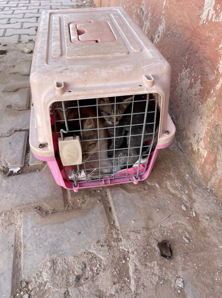 Hier, une première pour moi… en rentrant d’avoir déposé Lilly-Rose en pension chez Nicole, à l’entrée du village pas loin d’un de mes points de nourrissage… une caisse ouverte sur le trottoir et dedans et à côté une maman et ses 4 chatons dont 2 aveugles… au bord de la route…