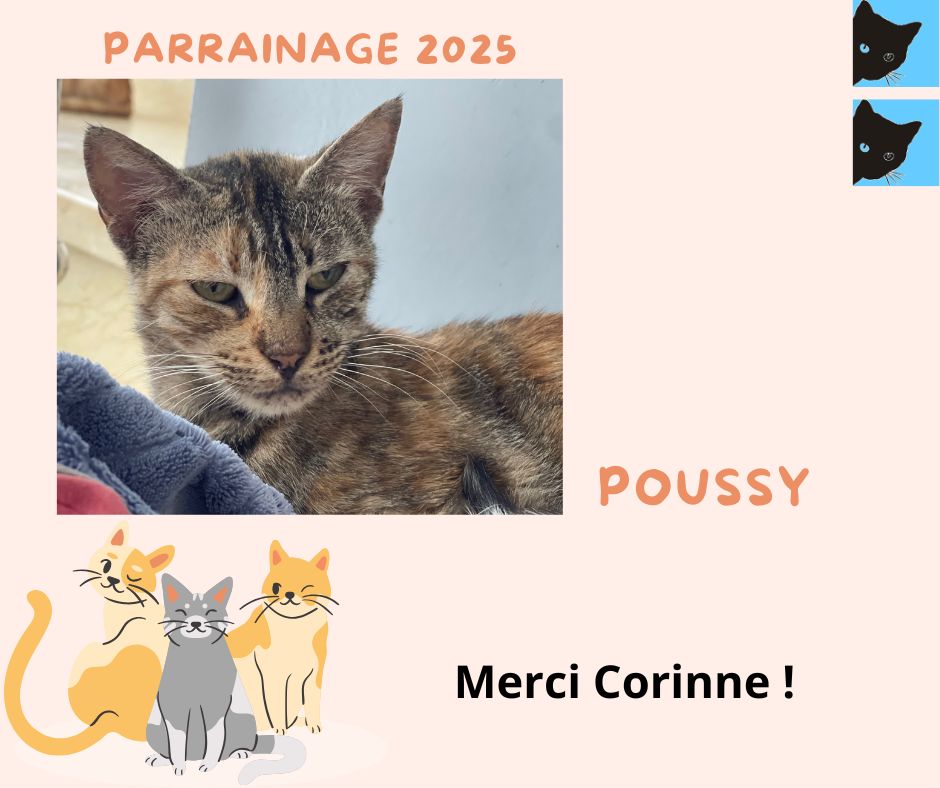 Merci à marraine Coco Lolo pour le renouvellement du parrainage de sa filleule Poussy pour la 2ème année et ainsi financer sa vaccination annuelle 2025 !