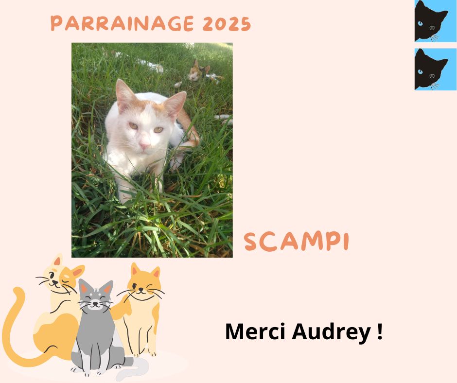 Merci à marraine Audrey Lita pour le renouvellement du parrainage de son filleul Scampi pour la 2ème année et ainsi financer sa vaccination annuelle 2025 !