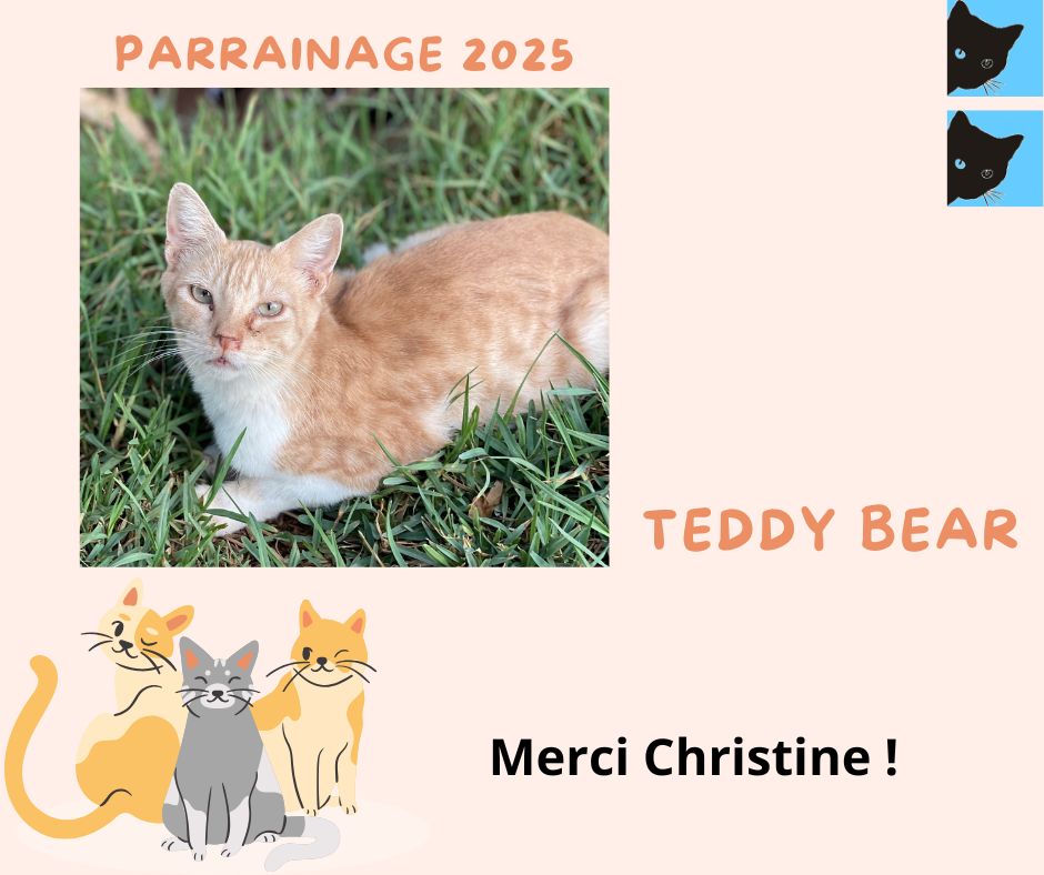 Merci à marraine Christine Leblanc pour le renouvellement du parrainage de son filleul Teddy Bear pour la 2ème année et ainsi financer sa vaccination annuelle 2025 !