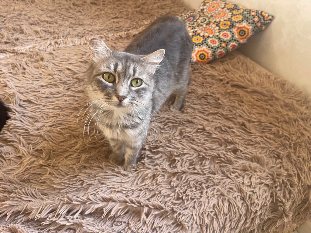 Loki est une chatte très douce, un peu la pauvre triste de son abandon… mais elle commence à prendre ses habitude à la maison.