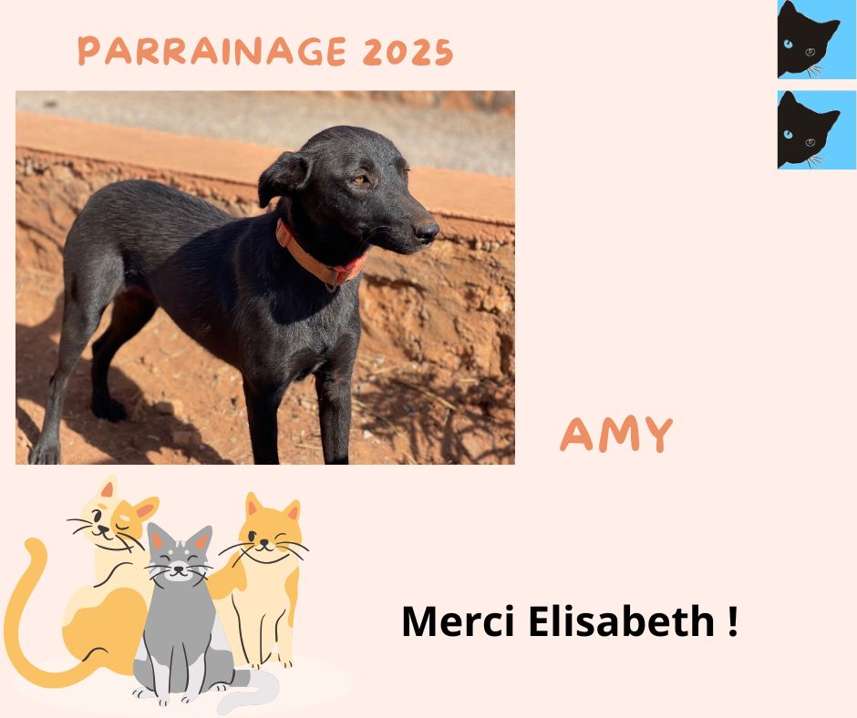 Merci à marraine Babou Bab pour le renouvellement du parrainage de sa filleule Amy pour la 2ème année et ainsi financer sa vaccination annuelle 2025 !