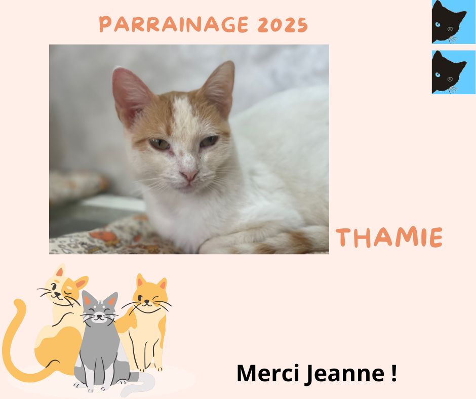 Merci à Jeanne Doris Handock pour le renouvellement du parrainage de sa filleule Thamie pour la 2ème année et ainsi financer sa vaccination annuelle 2025 et un MiamMiam !