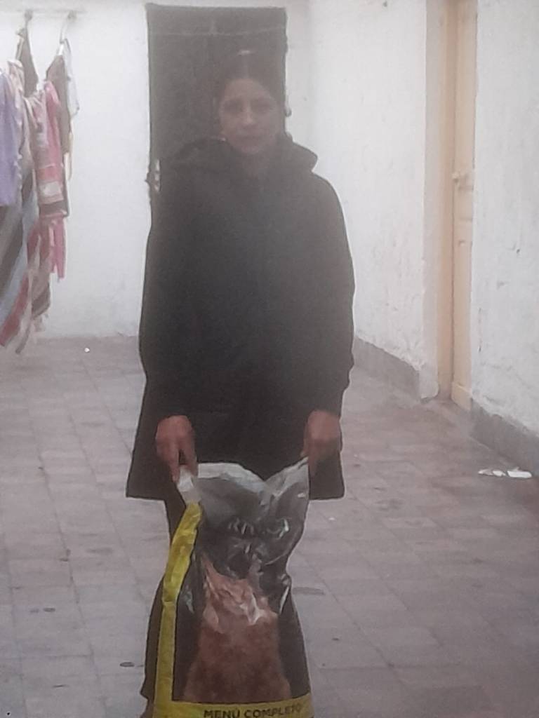 Fatima a reçu son premier sac de croquettes de la collecte.