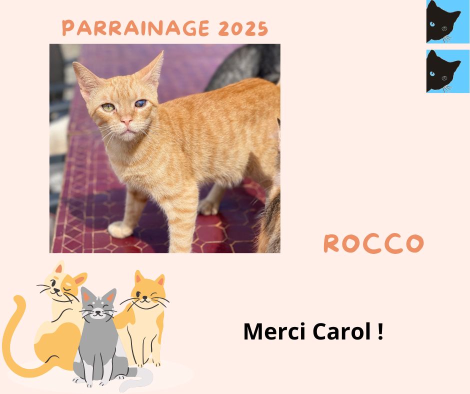 Merci à Carol Lymn pour le renouvellement du parrainage de son filleul Rocco pour la 2ème année et ainsi financer sa vaccination annuelle 2025 !