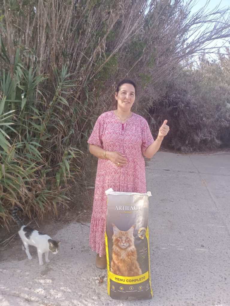 Raja a également reçu un sac pour le nourrissage qu’elle effectue dans son quartier.
