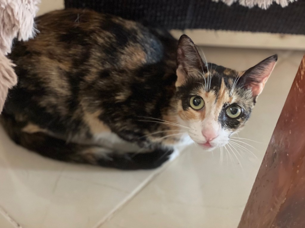 Mimi, chatte de maison qui arrive d’Agadir, déposée par une dame, qui l’avais sauvée dans la rue, mais qui ne pouvait la garder vivant dans un tout petit appartement avec d’autres chats…