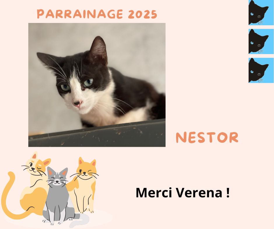 Nestor est un chat très tranquille qui aime bien les câlins, mais ne vient pas les chercher.